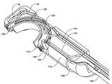 사용자는 절개 또는 일련의 중단된 스티치의 전체 길이를 지나 확장할 수 있는 연속 봉합을 생성하기 위해 일반적으로 전진 방향과 평행한 축 주위에 니들 회전을 번갈아 전진시키고 액츄에이팅함으로써 봉합 장치를 계속해서 조작할 수 있다. 각각의 개별 스티치를 만든 후, 봉합 물질 또는 트레드에 견인력을 가해 스티치를 팽팽하게 하여, 절개된 조직 분절의 길이에 걸쳐 균일하게 생성된 봉합이 긴장된다. 따라서, 단단한 분절 봉합을 성취하고, 조직의 출혈 및 찢어짐이 최소화된다. 적절한 양의 봉합 물질 또는 트레드(246)가 위치하면, 형성된 스티치를 팽팽하게 하고 매듭짓기 위해 사용자는 니들 그래스퍼(grasper)를 사용할 수 있다.The user may alternately advance and actuate the needle rotation around an axis parallel to the advancing direction to produce a continuous seal that can extend past the entire length of the incision or series of interrupted stitches, can do. After making each individual stitch, the stitches are tightened by applying a pulling force on the stitching material or tread, so that the uniformly created stitches are strained over the length of the incised tissue segment. Thus, hard segmented seams are achieved and tissue bleeding and tear are minimized. Once an appropriate amount of seal material or tread 246 is positioned, the user can use a needle grasper to tighten and knot the formed stitches.