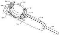 추가의 양태에 따르면, 하우징은 원하는 경우 대체로 원통형 또는 직선일 수 있다. 전개형 또는 확장형 니들 트랙은 아치형 경로를 따라 하우징으로부터 전개되도록 적합한 1개 이상의 아치형 가이드를 포함할 수 있다. 전개형 또는 확장형 니들 트랙은 아치형 경로를 따라 하우징으로부터 전개되도록 적합한 아치형 가이드의 쌍을 포함할 수 있다. 따라서, 아치형 가이드의 쌍은 풀 와이어의 제1 쌍을 당겨 아치형 경로를 따라 하우징으로부터 전개될 수 있고, 하나의 풀 와이어는 각각의 가이드에 부착된다. 일 실시양태에서, 니들 트랙이 확장 조건에 있을 때 전개형 또는 확장형 니들 트랙은 360° 니들 경로 중 약 270°를 점유하지만, 트랙의 각 정도는 예를 들면 1° 증분으로 원하는 경우 다소 270°일 수 있다.According to a further aspect, the housing may be generally cylindrical or straight, if desired. The deployed or extended needle track may include one or more arcuate guides suitable for deployment from the housing along the arcuate path. The deployed or extended needle track may include a pair of suitable arcuate guides adapted to deploy from the housing along the arcuate path. Thus, a pair of arcuate guides can be deployed from the housing along an arcuate path by pulling a first pair of pull wires, and one pull wire is attached to each guide. In one embodiment, when the needle track is in an expanding condition, the deployed or extended needle track occupies about 270 degrees in the 360 degree needle path, but the angular extent of the track is somewhat less than 270 degrees, .