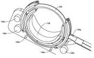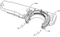 관 칼라(도 66 내지 도 67)는 (상기 장치(1000)의 수직 중앙면에 걸쳐) 서로 실질적으로 거울상이고, 관(510)의 근위 말단(512)을 수용하기 위한 중공, 대체로 원통형 내부를 획정하도록 협력한다. 특히, 러그(632a, 634a)는 관(510)의 근위 말단(512) 주위의 개구(518)와 일치하도록 제공된다(도 69). 관 칼라는 또한 이의 근위 면을 따라 방사상 배향된 디텐트(632b, 634b)를 획정하여 로티큘레이터 면(644)의 원위 면 위에 융기 부분(644b)과 일치한다(도 68). 로티큘레이터 면(644)은 왼쪽 및 오른쪽 하우징 측 부분(612, 614)이 수용하기 위한 정사각형 횡단면을 갖는 근위 부분(644c)을 추가로 포함한다.The tube collar (Figures 66-67) is substantially mirror image of each other (over the vertical center plane of the device 1000) and defines a hollow, generally cylindrical interior for receiving the