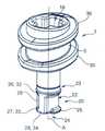 특히 도 4를 참조하면, 슬리브(20)는 환상 그루브(26), 반환상 그루브(27) 및 환상 그루브(26)와 반환상 그루브(27)를 서로 연결시키는 두 개의 종 방향 그루브(28)로 이루어진 주변부 그루브가 제공된다. 다양한 실시형태(도시하지 않음)에서, 슬리브는 단일 종 방향 그루브를 포함한다.4,
