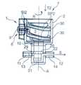 따라서, 단일 작동 회전-진동 서브어셈블리(1)는 두 개의 덕트(11, 12), 작동 챔버(31), 채널(22) 및 리세스존(29)을 포함하는 단일 스테이지가 제공된다. 따라서, 단일 채널(22)은 덕트(11, 12)의 "흡입" 및 "배출" 짝에 상응한다.Thus, a single actuated rotary-