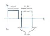 도 22는 단일 작동 회전-진동 장치의 작동 챔버 내의 압력 시간에 따른 변화(실선)를 도시하고, 피스톤의 완전한 회전을 거치는 동안에 얻어지는 유속(점선)을 도시하는 간략화한 그래프이다. 상기 그래프는 아래 기재된 변이 상태를 도시하지는 않는다.