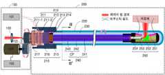 앞서 설명하였듯이, 도파관 집합체(240)는 빛을 전달할 수 있는 광섬유(241), 광섬유(241)와 동축으로 배치된 부분을 포함하는 제1 도전성 통로 및 광섬유(241)와 동축으로 배치된 부분을 포함하고, 제1 도전성 통로와 절연된 제2 도전성 통로를 포함하는 도전성 통로(CP)를 포함한다.As described above, the