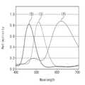 도 7을 참조하면, 상기 캐소드 전극(61a), 상기 애노드 전극(61c), 상기 제 1 금속막(62a) 및 상기 제 2 금속막(62c) 및 상기 중간 절연막(65)은 약 2nm, 약 70nm, 약 80nm, 약 8nm, 및 약 10nm의 고정적인 두께를 가진다. 상기 광필터 절연막(62b)은 약 200nm, 약 340nm, 또는 약 305nm의 두께를 가진다. 상기 발광층(61b)의 두께는 약 280nm, 약 220nm, 또는 약 180nm 두께를 가진다. 상기 발광층(61b) 및 상기 광필터 절연막(62b)의 두께변화에 따라 상기 시뮬레이션 세부 화소(60)에서 발광하는 색이 다를 수 있다. 바람직하게는, 상기 시뮬레이션 세부 화소(60)에 방출되는 광이 가지고 있는 반사파장이 다를 수 있다. 상기 반사형 광필터(62)는 관측각에 따라 반사율의 값이 최대인 파장대역이 다를 수 있다. 본 발명의 일 실시예에서의 관측각은 30도이다.7, the