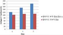 도 2는 본 발명의 캡슐 1을 처리했을 때, 콜라겐 1(도 2a), 콜라겐 2(도 2b) 및 엘라스틴(도 2c)의 발현변화를 보이는 도이다.