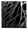 본원에 사용된 용어 "섬유"는 예를 들면, 적어도 약 100배의 높은 종횡비(aspect ratio)를 갖는 텍스타일의 기본 요소로서 규정된다. 또한, "필라멘트/연속 필라멘트"는 매우 높은 종횡비를 갖는 대단히 긴 길이의 연속사이다. "스테이플 섬유"는 연속 필라멘트로부터 절단된 길이이다. 용어 "다성분 섬유"는 2성분 섬유를 포함하는 물리적 또는 화학적 성질이 상이한 2개 이상의 중합체를 포함하는 섬유를 나타낸다. 섬유 물질, 웹, 매트(mat), 배트(bat) 또는 시트와 관련하여 본원에 사용된 용어 "부직"은 섬유가 규정되지 않거나 랜덤 배향으로 배열된 섬유 구조물을 나타낸다.The term " fiber " as used herein is defined as a fundamental element of a textile having, for example, a high aspect ratio of at least about 100 times. In addition, " filaments / continuous filaments " are continuous lengths of extremely long lengths with very high aspect ratios. &Quot; Staple fibers " are lengths cut from continuous filaments. The term " multicomponent fiber " refers to a fiber comprising two or more polymers having different physical or chemical properties, including bicomponent fibers. The term " nonwoven " as used herein in the context of a fibrous material, web, mat, bat or sheet refers to a fibrous structure in which the fibers are undefined or arranged in a random orientation.