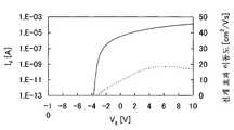 도 23은 Id 및 전계 효과 이동도의 Vg 의존성을 도시하는 도면.
