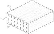 이에, 다층 반사형 편광자가 아닌 기재 내부에 길이방향으로 신장된 복굴절성 폴리머를 배열하여 반사형 편광자의 기능을 달성할 수 있는 폴리머가 분산된 반사편광자가 제안되었다. 도 3은 봉상형 폴리머를 포함하는 반사형 편광자(20)의 사시도로서, 기재(21) 내부에 길이방향으로 신장된 복굴절성 폴리머(22)가 일방향으로 배열되어 있다. 이를 통해 기재(21)와 복굴절성 폴리머(22) 간의 복굴절성 계면에 의하여 광변조 효과를 유발하여 반사형 편광자의 기능을 수행할 수 있게 되는 것이다. 그러나, 상술한 교호적층된 반사형 편광자에 비하여 가시광선 전체 파장영역의 광을 반사하기 어려워 광변조 효율이 너무나도 떨어지는 문제가 발생하였다. 이에, 교호적층된 반사 편광자와 비슷한 투과율 및 반사율을 가지기 위해서는 기재 내부에 지나치게 많은 수의 복굴절성 폴리머(22)를 배치하여야 하는 문제가 있었다. 구체적으로 반사형 편광자의 수직단면을 기준으로 가로 32인치 디스플레이 패널을 제조하는 경우 가로 1580 ㎜이고 높이(두께) 400㎛ 이하인 기재(21) 내부에 상술한 적층형 반사 편광자와 유사한 광학 물성을 가지기 위해서는 상기 길이방향의 단면직경이 0.1 ~ 0.3㎛인 원형 또는 타원형의 복굴절성 폴리머(22)가 최소 1억개 이상 포함되어야 하는데, 이 경우 생산비용이 지나치게 많아질 뿐 아니라, 설비가 지나치게 복잡해지고 또한 이를 생산하는 설비를 제작하는 것 자체가 거의 불가능하여 상용화되기 어려운 문제가 있었다. 또한, 시트 내부에 포함되는 복굴절성 폴리머(22)의 광학적 두께를 다양하게 구성하기 어려우므로 가시광선 전체 영역의 광을 반사하기 어려워 물성이 감소하는 문제가 있었다.Thus, there has been proposed a reflective polarizer in which a birefringent polymer stretched in the longitudinal direction is arranged in a substrate, not a multilayer reflective polarizer, and a polymer capable of achieving the function of the reflective polarizer is dispersed. 3 is a perspective view of a