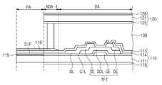 상기 어레이 기판(110)의 상기 패드 영역(PA)에는 상기 박막 트랜지스터(TFT)와 연결되는 신호 입력 패드(SIP)가 배치될 수 있다.A signal input pad (SIP) connected to the thin film transistor (TFT) may be disposed in the pad area PA of the