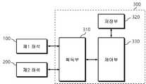 이하에서는 도 4를 참고하여, 디스플레이 제어장치의 구성에 대해 상세히 설명한다. 도 4는 본 발명의 일 실시예에 따른, 디스플레이 제어장치(300)의 구성을 도시한 블록도이다. 도 4에 도시된 바와 같이, 디스플레이 제어장치(300)는 제1 좌석(100) 및 제2 좌석(200)과 통신 가능하도록 네트워크를 통해 연결되며, 획득부(310), 저장부(320) 및 제어부(330)를 포함한다.Hereinafter, the configuration of the display control apparatus will be described in detail with reference to FIG. 4 is a block diagram showing the configuration of a
