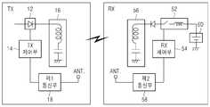한편, 상기한 본 발명의 제1 실시예에서는 전력 공급 주파수 대역을6.78MHz를 이용하고, 13.56MHz 대역을 통신 주파수 대역으로 이용하는 경우를 예를 들었지만, 전력 공급 주파수 대역을 100~200KHz으로 이용할 수도 있다.In the first embodiment of the present invention, the power supply frequency band is 6.78 MHz and the 13.56 MHz band is used as the communication frequency band. However, the power supply frequency band may be 100 to 200 KHz .