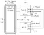 한편, 도 5b를 참조하면, WPT 코일(710)은 POWER IC(720)와 연결될 수 있으며, 100~ 200KHz의 주파수 대역에서 공진하여, 전력 공급 장치(TX)로부터 전력을 공급받아 POWER IC(720)로 제공한다. 여기서도 NFC 코일(740), Power IC(720), Power IC 입출력부(721), NFC IC(730), NFC IC 입출력부(731)의 구성 및 동작은 상기 도 4b에서 설명한 내용과 같다.5B, the