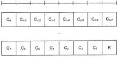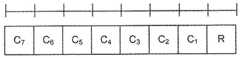 도 3에 나타낸 바와 같이, 그러한 PHR MAC CE의 제1버전은 하나의 1차 컴포넌트 캐리어 및 최대 7개의 구성된 2차 컴포넌트 캐리어(1 내지 7의 2차 컴포넌트 캐리어 인덱스를 갖는)를 포함하는 8 비트(1 옥텟(octet)) 비트 맵(C-필드라고도 부르는)을 포함할 수 있다.   1차 컴포넌트 캐리어가 항상 구성되고 활성화되어야 하고 모든 PHR MAC CE가 그러한 1차 컴포넌트 캐리어에 대한 Type 1 리포트를 포함하기 때문에, 비트 맵의 제1비트는 예약된 R일 수 있다.   각각의 C비트(예컨대, C1 내지 C7)는 각각의 2차 컴포넌트 캐리어(예컨대, 인덱스 1에 의해 식별된 2차 컴포넌트 캐리어에 대한 C1, 인덱스2에 의해 식별된 2차 컴포넌트 캐리어에 대한 C2, ..., 인덱스 7에 의해 식별된 2차 컴포넌트 캐리어에 대한 C7)에 대한 가능한 컴포넌트 캐리어 인덱스에 대응한다.   그러한 구성된 2차 컴포넌트 캐리어들의 어느 것도 7보다 큰 컴포넌트 캐리어 인덱스를 갖지 않기 때문에, 상기 PHR MAC CE의 제1버전이 사용될 수 있다.   일부 실시예에 따르면, 2차 컴포넌트 캐리어들은 비-순차 2차 컴포넌트 캐리어 인덱스들로 구성될 수 있다.   예컨대, 인덱스 1, 3, 및 5를 갖는 3개의 2차 컴포넌트 캐리어들은 C비트(C2, C4, C6, 및 C7)들이 0이도록(비-구성의 2차 컴포넌트 캐리어에 대해) 무선 단말을 위해 구성됨으로써, 각각의 C비트(C1, C3, 및 C5)는 2차 컴포넌트 캐리어들에 대해 파워 헤드룸이 리포트되지 않으면 0이거나, 또는 2차 컴포넌트 캐리어에 대해 파워 헤드룸이 리포트되면 1이다.As shown in Figure 3, the first version of such a PHR MAC CE is an 8-bit (1 < rd >) version of the PHR MAC CE that includes one primary component carrier and up to seven configured