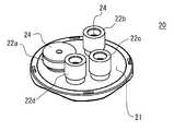컨버터(20)는, 천장판부(21)와, 천장판부(21)로부터 돌출되어 형성된 복수의 포트(22a∼22d)와, 천장판부(21)에 주위 설치된 복수의 걸림 볼록부(26)를 구비하고 있다.  본 실시 형태의 컨버터(20)는 평면에서 보아 대략 원형을 이루고, 걸림 볼록부(26)는 90도 간격으로 4개소에 형성되어 있다.  걸림 볼록부(26)는, 컨버터(20)에 대해 직경 방향의 내측으로 돌출되어 형성되어 있는 돌기이다.The