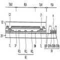 상기 복수의 구동 전극들(TE)은 상기 제1 방향(D1)으로 연장되고, 상기 제2 방향(D2)으로 배열된다. 상기 구동 전극들(TE)은 정전식 터치 방식에 따라서 순차적으로 구동 신호를 전달한다. 각 구동 전극(TE)은 상기 제1 방향(D1)으로 배열된 복수의 구동 단위부들(TU1, TU2) 및 상기 제1 방향(D1)으로 인접한 상기 구동 단위부들(TU1, TU2)을 서로 연결하는 복수의 브릿지 라인들(BL)을 포함한다. 상기 구동 단위부(TU1, TU2)는 마름모 형상을 가지고, 그물 구조로 배열된 복수의 구동 라인들(TL)을 포함한다. 각 구동 라인(TL)은 상기 차광 패턴(BM)이 배치된 영역 내에 배치된다. 상기 브릿지 라인(BL)은 상기 구동 라인(TL)과 다른 금속층에 의해 패터닝되고, 단일 층 구조를 갖는다.The plurality of driving electrodes TE extend in the first direction D1 and are arranged in the second direction D2. The driving electrodes TE sequentially transmit driving signals according to the electrostatic touch method. Each drive electrode TE is connected to a plurality of drive unit units TU1 and TU2 arranged in the first direction D1 and to the drive unit units TU1 and TU2 adjacent to each other in the first direction D1 And includes a plurality of bridge lines (BL). The driving unit units TU1 and TU2 have a rhombic shape and include a plurality of driving lines TL arranged in a net structure. Each driving line TL is disposed in a region where the light-shielding pattern BM is disposed. The bridge line (BL) is patterned by a metal layer different from the driving line (TL), and has a single layer structure.