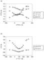 도 8의 (a)는, 플라즈마 처리 장치(10A)를 사용해서 구한, 분배 비율이 20%인 경우의 하부 전극(16)의 리액턴스와 상부 전극(14), 하부 전극(16), 챔버 본체(12) 각각의 전류값과의 관계를 나타내는 그래프이며, 도 8의 (b)는, 플라즈마 처리 장치(10A)를 사용해서 구한, 분배 비율이 20%인 경우의 하부 전극(16)의 리액턴스와 상부 전극(14), 하부 전극(16) 각각의 전위와의 관계를 나타내는 그래프이다.