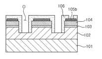 상술한 소자의 구조는 이하의 제조방법에 대한 설명으로부터 보다 구체적으로 이해될 수 있을 것이다. 도 4 내지 15는 본 발명의 일 실시 형태에 따른 반도체 발광소자의 제조방법을 나타내는 개략적인 공정도이다. 본 실시 형태에 따른 반도체 발광소자 제조방법의 경우, 우선, 도 4에 도시된 것과 같이, 기판(101) 상에 MOCVD, HVPE 등과 같은 공정을 이용하여 제1 도전형 반도체층(102), 활성층(103) 및 제2 도전형 반도체층(104)을 성장시켜 반도체 적층체를 형성한다. 구조에 대한 앞선 예에서와 달리 본 제조방법의 예에서는 요철 구조를 갖지 않는 기판(101)을 사용한 형태를 기준으로 한다.
