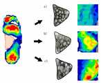 반면에, 도 7의 c는 20Shore C, 40Shore C, 60Shore C의 경도를 갖는 세 종류의 쿠션 볼(31)을 적용한 경우의 압력 분포도로서, 아치 부분의 비교적 높은 압력과 반발력이 작용하며, 아치 서포팅이 원활히 이루어진다.On the other hand, FIG. 7C shows the pressure distribution when three types of