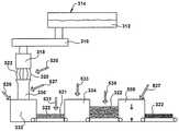 도 5 를 참조하면, 비반응된 건식 바인더 (521) 를 갖는 연속 웹은 형성 장치 (332) 로부터 선택적인 적층 메카니즘 (334) 으로 전달된다.     적층 메카니즘은 매우 다양한 상이한 형태들을 취할 수 있다.     예를 들면, 적층 메카니즘은 종방향 (D1) 으로 웹 (321) 을 적층하는 랩핑 메카니즘 또는 종방향에 대해 실질적으로 직각인 방향으로 웹을 랩핑하는 크로스 랩핑 메카니즘일 수 있다.      무바인더 웹 (321) 을 적층하기 위한 상기 설명된 크로스 랩핑 디바이스는 비반응된 건식 바인더를 갖는 웹 (521) 을 적층하는 데 사용될 수 있다.5, a continuous web having an unreacted