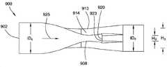 공급 도관 (22)은 제1 및 제2 진입 구역 (36, 37) 및 중간 커넥터 구역 (39)을 포함한다. 제1 및 제2 진입 구역 (36, 37)은 대략 원통형이고 횡축 (60)을 따라 연장한다. 제1 및 제2 공급 유입구 (24, 25)는 제1 및 제2 진입 구역 (36, 37) 각각의 원위단부에 배치되고, 상호 유체 연통된다.The