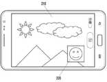 여기서 상기 도 2b 및 도 2c는 상기 제2이미지센서125에서 촬영되는 제2이미지220가 표시부130의 좌측 하단 영역에 고정 표시되는 예를 도시하고 있다. 그러나 상기 부화면으로 표시되는 이미지는 필요에 따라 가변적으로 표시영역을 설정할 수 있다. 예를들면 상기 부화면 표시영역은 이미지센서(예를들면 제2이미지센서125)와 인접한 영역에 표시할 수도 있다. 이는 제2이미지센서125의 경우, 듀얼  모드시 사용자의 이미지를 촬영하게 되며, 이런 경우 제2이미지센서125와 근접한 위치에 부화면 표시영역을 설정하면 자연스러운 부화면 이미지를 획득할 수 있기 때문이다. 즉, 제2이미지센서125에 근접한 위치에 부화면 표시영역을 설정하면 제2이미지센서125의 촬영 방향(화각)과 사용자의 시선을 최대한 일치시킬 수 있으며, 이로인해 자연스러운 사용자의 이미지를 획득할 수 있다. 상기와 같이 부화면 이미지를 표시하는 경우, 상기 제어부100은 촬영 요구시 프리뷰 모드에서 표시되는 부화면 이미지를 캡쳐하며, 합성시 원래 위치되어야할 부화면 영역으로 캡쳐된 부화면 이미지를 이동시켜 주화면 이미지에 합성하는 방법을 사용할 수 있다.2B and 2C illustrate an example in which the