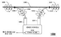 일 예시적인 실시예에 따라, 가이드파와 함께 사용된 와이어 또는 다른 송신 매체 "근처"라는 용어는 적어도 부분적으로 와이어 또는 다른 송신 매체 주위의 원형 또는 실질적으로 원형 필드 분포, 대칭적 전자기장 분포(예를 들면, 전기장, 자기장, 전자기장, 등), 또는 다른 기본 모드 패턴을 갖는 가이드파들과 같은 기본 가이드파 전파 모드들을 포함할 수 있다. 또한, 가이드파가 와이어 또는 다른 송신 매체 "근처에" 전파할 때, 기본파 전파 모드들(예를 들면, 제로 차수 모드들)뿐만 아니라, 추가로 또는 대안적으로, 고차 가이드파 모드들(예를 들면, 1차 모드들, 2차 모드들, 등), 비대칭 모드들 및/또는 와이어 또는 다른 송신 매체 주위의 원형이 아닌 필드 분포들을 갖는 다른 가이드(예를 들면, 표면)파들과 같은 비기본파 전파 모드들을 포함하는 가이드파 전파 모드에 따라 그렇게 수행할 수 있다. 여기에 사용된 바와 같이, 용어 "가이드파 모드"는 송신 매체, 결합 디바이스 또는 가이드파 통신 시스템의 다른 시스템 구성 요소의 가이드파 전파 모드를 지칭한다.According to one exemplary embodiment, the term "near" a wire or other transmission medium used in conjunction with a guide wave refers to a circular or substantially circular field distribution, symmetric electromagnetic field distribution (eg, at least partially around the wire or other transmission medium). Basic wave guide modes, such as guide waves having an electric field, magnetic field, electromagnetic field, etc.), or other basic mode pattern. In addition, when the guide wave propagates "near" a wire or other transmission medium, in addition or alternatively, higher order guide wave modes (eg, zero order modes), as well as fundamental wave propagation modes (eg, zero order modes). Non-basic, such as, for example, primary modes, secondary modes, etc.), asymmetric modes and / or other guide (eg, surface) waves with non-circular field distributions around a wire or other transmission medium. This can be done according to the guide wave propagation mode, including the wave propagation modes. As used herein, the term “guide wave mode” refers to the guide wave propagation mode of a transmission medium, coupling device or other system component of a guide wave communication system.