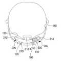 이와 같은 위치표시부재(400)의 케이스(410) 표면에는 스위치(430)의 노브가 돌출된 구성으로 되어 상기 조임테(160)에 의해 머리에 착용되는 과정에서 눌려 위치표시부재(400)의 위치발신회로부(420)에 폐회로를 형성하게 된다.The