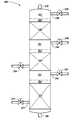 도 2는 본 발명의 방법의 다른 실시 형태를 위한 하향 유동 반응기 단위(200)를 예시한다. 도1에서와 같이, 단순성을 위해 일부 통상적인 구성요소는 예시하지 않는다.2 illustrates a
