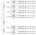 제1 서브-시나리오는, 예를 들어, UE0-UE1 페어링과 같은 2-사용자 페어링 시나리오이다. 이 경우, 페어링은 2명의 사용자의 PMI(단계 103에서 얻어짐)가 직교(orthogonal) 또는 준직교(quasi-orthogonal)인지 여부에 기초하여 수행될 수 있다. 다르게는, 페어링은 단계 106에서 얻어지는 공분산 행렬의 고유 벡터의 상관 임계치에 기초하여 수행될 수 있다. 다르게는, 페어링은 사용자의 스케줄링 우선순위에 기초하여 수행될 수도 있다. 다르게는, 페어링될 사용자들은 BF 용량 최대화 기준에 기초하여 선택될 수 있다. 분명한 것은, 실제 적용 중에, 사용자 페어링이 다른 알고리즘을 사용하여 수행될 수도 있다는 것이다. 통상의 기술자는 이러한 내용의 부분을 잘 알고 있으며, 여기서는 상세한 설명을 기술하지 않는다. 2명의 사용자 페어링 시나리오는 6가지 유형으로 나타난다. 첫 번째 유형은 UE0가 하나의 계층에 매핑되는 단일 코드 워드를 가지며, UE1이 하나의 계층에 매핑되는 단일 코드 워드를 가지는 2계층 MU-MIMO 시나리오이다. 두 번째 유형은 UE0가 2개의 계층에 매핑되는 단일 코드 워드를 가지며, UE1이 하나의 계층에 매핑되는 단일 코드 워드를 가지는 3계층 MU-MIMO 시나리오이다. 세 번째 유형은 UE0가 2개의 계층에 매핑되는 단일 코드 워드를 가지며, UE1이 2개의 계층에 매핑되는 단일 코드 워드를 가지는 4계층 MU-MIMO 시나리오이다. 네 번째 유형은 UE0가 하나의 계층에 매핑되는 단일 코드 워드를 가지고, UE1이 각각 하나의 계층에 매핑되는 2개의 코드 워드를 가지는 3계층 MU-MIMO 시나리오이다. 다섯 번째 유형은 UE0가 2개의 계층에 매핑되는 단일 코드 워드를 가지며 UE1이 각각 하나의 계층에 매핑되는 2개의 코드 워드를 가지는 4계층 MU-MIMO 시나리오이다. 여섯 번째 유형은 UE0가 각각 하나의 계층에 매핑되는 2개의 코드 워드를 가지며 UE1이 각각 하나의 계층에 매핑되는 2개의 코드 워드를 가지는 4계층 MU-MIMO 시나리오이다.The first sub-scenario is, for example, a two-user pairing scenario such as UE0-UE1 pairing. In this case, pairing may be performed based on whether two users' PMIs (obtained in step 103) are orthogonal or quasi-orthogonal. Alternatively, pairing may be performed based on the correlation threshold of the eigenvectors of the covariance matrix obtained in