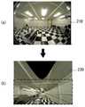 AVM 시스템용 카메라 등과 같이 실세계에 이미 설치된 카메라(150)들 중 다수는 넓은 영역을 촬영하기 위해 광각 렌즈를 사용하고 있다. 광각 렌즈에 의해 촬영된 촬영 영상(210)은 도 2의 (a)에 예시된 바와 같이, 중심점을 기점으로 왜곡도를 가진다.Many cameras 150 already installed in the real world, such as cameras for AVM systems, use wide-angle lenses to capture a wide area. The photographed