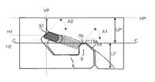 이하의 본문에서, 설치된 바닥 패널의 가시 표면은 "정면"이라 칭하고, 반면에 밑바닥(sub floor)에 대면하는 바닥 패널의 대향 측면은 "후면"이라 칭한다.  정면과 후면 사이의 에지는 "조인트 에지"라 칭한다.  "수평 평면"이라는 것은, 표면층의 외부 부분에 평행하게 연장하는 평면을 의미한다.  2개의 함께 결합된 바닥 패널의 2개의 인접한 조인트 에지의 바로 병치된 상부 부분은 수평 평면에 수직인 "수직 평면"을 규정한다.  "수직 로킹"이라는 것은, D1 방향에서 수직 평면에 평행한 로킹을 의미한다.  "수평 로킹"이라는 것은 D2 방향에서 수평 평면에 평행한 로킹을 의미한다.