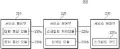 각 구성 요소에 대해 보다 구체적으로 설명하면, 먼저 서비스 통신부(210)는 하나 이상의 단말(100) 및 컨텐츠 제공 장치(400)와 정보를 송수신할 수 있다. 이를 위해, 서비스 통신부(210)는 단말 통신 모듈(210a) 및 장치 통신 모듈(210b)을 포함하여 구성될 수 있으며, 단말 통신 모듈(210a)은 단말(100)과의 정보의 송수신을 지원하며, 장치 통신 모듈(210b)은 컨텐츠 제공 장치(400)와의 정보의 송수신을 지원한다.When describing each component in more detail, first, the