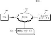 도 1을 참조하면, 본 발명의 실시 예에 따른 클라우드 서비스 시스템(1000)은 단말(100) 및 클라우드 서비스 장치(200), 그리고 상기 단말(100) 및 클라우드 서비스 장치(200) 간의 정보의 송수신을 지원하는 통신망(300)을 포함하여 구성될 수 있다. 더하여, 본 발명의 실시 예에 따른 클라우드 서비스 시스템(1000)은 다수의 컨텐츠 제공 장치(400)와 연동하여 동작할 수 있다.Referring to FIG. 1, the