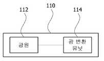 상기 광 변환 유닛은 상기 광원으로부터 출력된 광을 집속시키는 집속 렌즈, 그리고 광의 경로를 조절하는 반사부재 중 적어도 하나를 더 포함할 수 있다.The light conversion unit may further include at least one of a focusing lens for focusing light output from the light source, and a reflecting member for adjusting a path of light.