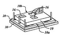 도 1A 및 1B는 일 예시에 따른 디바이스 내에 포함된 다층 전자기기 어셈블리의 개략화된 표현들이다. 도 1A는 디바이스의 주된 서브-어셈블리들의 분해 조립도이다. 서브어셈블리들은 다층 전자기기 어셈블리(multilayer electronics assembly; 10), 베이스 기판(base substrate; 20) 및 히트-싱크(heat-sink; 30)를 포함한다.1A and 1B are schematic representations of a multilayer electronics assembly included in a device according to one example. 1A is an exploded view of the main sub-assemblies of the device. Subassemblies include a multilayer electronics assembly (10), a base substrate (20) and a heat-sink (30).