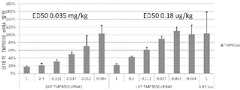 질병 마커 또는 증상의 상황에서 "낮추다"는 상기 수준에서의 통계적으로 유의한 감소를 의미한다. 상기 감소는, 예를 들어, 적어도 10%, 적어도 20%, 적어도 30%, 적어도 40% 또는 그 이상일 수 있고, 이는 바람직하게는 상기 장애가 없는 개체에 대한 정상의 범위 내로 허용되는 수준으로 하향시키는 것이다.By “lowering” in the context of a disease marker or symptom is meant a statistically significant reduction in this level. The reduction can be, for example, at least 10%, at least 20%, at least 30%, at least 40% or more, which is preferably to lower the acceptable level within the normal range for the subject without the disorder. .