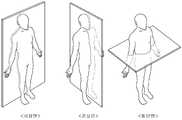신체의 관절에서 발생하는 움직임은 도 7에 도시된 바와 같이, 시상면(Sagittal plane), 관상면(Frontal plane) 및 횡단면(Horizontal plane)에서 움직임이 발생하며, 시상면에서는 굴곡과 신전운동이 발생하고, 관상면에서는 외전과 내전운동이 발생하며, 횡단면에서는 복합운동인 회전과 회선운동이 발생할 수 있다. 시상면에서의 움직임은 중력선을 이용하여 신체의 측면에서 관절가동범위를 측정하고, 관상면에서의 움직임은 중앙선을 이용하여 측정하며, 횡단면에서의 움직임은 중력선과 중앙선을 이용할 수 있다.As shown in FIG. 7, movements occurring in the joints of the body occur in the sagittal plane, the frontal plane and the horizontal plane, and in the sagittal plane, flexion and extension movement occur. In addition, abduction and pronation movements occur in the coronal plane, and rotation and rotational movements, which are complex movements, may occur in the cross section. Movement in the sagittal plane is measured by using a gravity line to measure the range of motion of the joints on the side of the body, movement in the coronal plane is measured using a central line, and movement in the cross-section can use a gravity line and a central line.