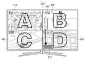 그리고 제2 분할 화면(420)은 HDMI1 소스로부터 입력받은 제2 컨텐츠 영상을 표시한다.In addition, the second divided