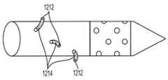 해당 도면에 도시된 바와 같이, 복수의 온도 센서들은 예를 들어, 길쭉한 본체의 길이 축을 따라 뻗어 있는 단일 라인에 위치할 수 있다. 그러나, 다른 구체예들에서 상기 온도 센서들은 길쭉한 본체의 둘레 주위의 다양한 위치에 배치됨으로써 코르크 스크류 또는 나선형 패턴을 형성할 수 있다. 아울러, 길쭉한 본체는 도 7에 도시된 센서들과 유사한 부가 라인의 온도 센서들을 포함할 수 있으며, 각각의 센서는 길쭉한 본체 둘레 주위의 서로 다른 위치에 배치될 수 있다. 이들 부가 온도 센서들은 길쭉한 본체(702)를 둘러싸고 있는 조직의 온도에 대한 세부사항들을 제공할 수 있다.As shown in the figure, a plurality of temperature sensors can be located, for example, on a single line extending along the length axis of the elongated body. However, in other embodiments, the temperature sensors can be placed at various locations around the perimeter of the elongated body to form a cork screw or spiral pattern. In addition, the elongated body may include additional lines of temperature sensors similar to those shown in FIG. 7, and each sensor may be disposed at different locations around the elongated body. These additional temperature sensors can provide details about the temperature of the tissue surrounding the