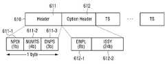 또한, 상기 옵션 헤더는, 상기 베이스 밴드 패킷과 관련된 입력 스트림 클럭 기준을 나타내는 24 비트 필드 및 상기 제거된 널 패킷 개수가 상기 기설정된 개수 이상인 경우 초과되는 널 패킷 개수에 대한 정보를 나타내는 8 비트 필드를 포함할 수 있다.In addition, the option header includes a 24-bit field indicating an input stream clock reference associated with the baseband packet and an 8-bit field indicating information on the number of null packets exceeded when the number of removed null packets is greater than or equal to the preset number. It can contain.