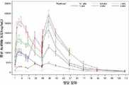 도 14는 실시예 5에서 설명된 다수의 상승 투약 연구 동안 다양한 시점(일자)에서 혈청내 ActRIIb-hFc의 약물동태학 프로파일을 나타낸다.