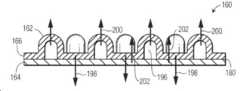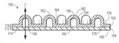적층체 웹(160)의 돌출부들(162)은 적절하다고 간주되는 임의의 배향으로 제공될 수 있다. 다양한 실시예에서, 적층체 웹(160)의 돌출부들(162)은 적층체 웹(160)에 무작위로 제공될 수 있다. 다양한 실시예에서, 돌출부들(162)은 흡수 용품(10)의 길이방향(X)으로 선형으로 배향될 수 있다. 다양한 실시예에서, 돌출부들(162)은 흡수 용품(10)의 가로방향(Y)으로 선형으로 배향될 수 있다. 다양한 실시예에서, 돌출부들(162)은, 흡수 용품(10)의 길이방향(X) 및/또는 가로방향(Y)에 대하여 경사질 수 있는 방향으로 선형으로 배향될 수 있다. 적층체 웹(160)의 지면 구역(188)은 적절하다고 간주되는 임의의 배향으로 제공될 수 있다. 다양한 실시예에서, 지면 구역들(188)은 흡수 용품(10)의 길이방향(X)으로 선형으로 배향될 수 있다. 다양한 실시예에서, 지면 구역들(188)은 흡수 용품(10)의 가로방향(Y)으로 선형으로 배향될 수 있다. 다양한 실시예에서, 지면 구역들(188)은, 흡수 용품(10)의 길이방향(X) 및/또는 가로방향(Y)에 대하여 경사질 수 있는 방향으로 선형으로 배향될 수 있다.The
