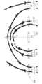 특히, 중앙 코일의 전류는의 크기와의 위상을 가진다. 첫번째와 다섯번째 전송 코일들의 전류들 각각은의 크기를 가지고의 위상을 가진다(즉, 그것들은와 위상이 다르다). 두번째와 네번째 전송 코일들의 전류들각각은의 크기를 가지고의 위상을 가진다(즉, 그것들은와 위상이 다르다). 도 3의 구성에서, 세번째 전송 코일과 위상이 다른 첫번째, 두번째, 네번째, 및 다섯번째 전송 코일들을 가지는 것은 첫번째, 두번째, 네번째, 및 다섯번째 전송 코일들이 세번째 전송 코일에 의해 생성된 자기장의 극성과 반대의 극성을 가지는 자기장을 생성하도록 한다. 수신기 코일(342)에서 전송 코일들(350) 모두에 의해 생성된 자기장 선들은 수신기 코일을 통하여 자속의 건설적인 부가의 결과가 된다.In particular, the central coil Current of Is Size and Has a phase of First and fifth transmitting coils Currents of Each Have the size of Have a phase of (i.e., they And the phase is different). Second and fourth transmitting coils Currents of Each Have the size of Have a phase of (i.e., they And the phase is different). In the configuration of Fig. 3, having the first, second, fourth, and fifth transmitting coils out of phase with the third transmitting coil is that the first, second, fourth, and fifth transmitting coils have the polarity of the magnetic field generated by the third transmitting coil. Try to create a magnetic field with opposite polarity. The magnetic field lines generated by all of the transmitting
