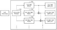 그리고, 제1 향상 계층에 대응하는 제1 향상 계층 비트스트림은 제1 향상 계층 복호화(703)를 통해 복호화된다.  그리고, 제1 향상 계층 복호화(703)를 통해 복호화된 출력 신호는 기본 계층 출력 신호와 합산되어, 제1 향상 계층 출력 신호로 출력된다.In addition, the first enhancement layer bitstream corresponding to the first enhancement layer is decoded through the first
