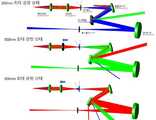 본 발명은 상기와 같은 방법에 의하여서도 자외선에서부터 근적외선 영역에 걸친 광원을 사용하여 분광 분석 방법으로 물질의 광 투과 또는 광 흡수에 관한 광 학특성을 측정하는 측정 장치에서 광 파장에 따라 발생하는 초점 거리의 변화를 완전히 해결할 수 없는 문제가 있었다. 비록 선행 발명에서 이러한 문제를 해결하였다고는 하지만, 광 파장이 광대역(200nm ~ 1400nm)으로 변화되는 상황에서는 광 파장에 따라 변화되는 초점의 위치를 100% 동일한 초점거리를 유지할 수 는 없었다.The present invention is a focal length generated according to light wavelength in a measuring device that measures optical properties related to light transmission or light absorption of a material by a spectroscopic analysis method using a light source ranging from ultraviolet to near-infrared by the above method. There was a problem that could not completely solve the change in Although the prior invention has solved this problem, in a situation in which the optical wavelength is changed to a broadband (200nm to 1400nm), the position of the focal point that changes according to the optical wavelength could not be kept 100% the same focal length.