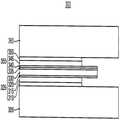 도 4는 본 발명의 또 다른 예시적인 실시예들에 따른 표시 장치를 나타내는 단면도이다. 도 4에 예시적으로 도시한 표시 장치(300)는 제1 감지 패턴들(320) 및 제2 감지 패턴들(335)을 제외하면 도 1을 참조하여 설명한 표시 장치와 실질적으로 동일하거나 유사한 구성을 가질 수 있다.4 is a cross-sectional view illustrating a display device according to still another exemplary embodiment of the present invention. The