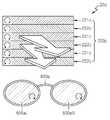 편광층(220)은 제1 편광 방향을 가지는 제1 편광층(221)과 제2 편광 방향을 가지는 제2 편광층(222)을 포함한다. 제1 편광 방향의 투과축과 제2 편광 방향의 투과축은 서로 다르다. 예를 들어, 제1 편광 방향이 우선회 원편광(right-handed circularly polarization) 방향인 경우, 제2 편광 방향은 제1 편광 방향과 반대하는 선회 방향인 좌선회 원편광(left-handed circularly polarization) 방향이 된다. 다른 예시로, 제1 편광 방향이 선편광 방향인 경우, 제2 편광 방향은 제1 편광 방향의 투과축과 직교하는 선편광 방향이 된다.The