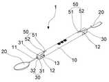 따라서, 작업자가 광조사체(30)가 가이드부(12)를 따라 완전히 내측으로 후퇴하면 접점단자(52)와 레일단자(51) 사이의 통전상태는 단선되어서, 배터리(40)에 축전된 전류가 광조사체(30)의 LED 램프(31)에 인가되지 아니하여서 LED 램프(31)는 점멸된다.Therefore, when the operator fully retracts the