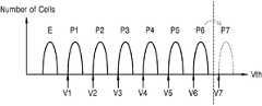 일 실시예에서, 메모리 셀이 싱글 레벨 셀로서 사용되는 경우, 메모리 셀은 소거 상태 및 프로그램 상태를 가질 수 있다. 다른 실시예에서, 메모리 셀은 소거 상태 및 복수의 프로그램 상태들 중 하나를 가질 수 있다. 예를 들어, 메모리 셀이 멀티 레벨 셀인 경우, 메모리 셀은 소거 상태 및 3개의 프로그램 상태들 중 하나를 가질 수 있다. 다른 예에서, 메모리 셀이 트리플 레벨 셀인 경우, 메모리 셀은 소거 상태 및 7개의 프로그램 상태들 중 하나를 가질 수 있다.In one embodiment, when the memory cell is used as a single level cell, the memory cell may have an erase state and a program state. In another embodiment, the memory cell may have an erase state and one of a plurality of program states. For example, when the memory cell is a multi-level cell, the memory cell may have an erase state and one of three program states. In another example, when the memory cell is a triple level cell, the memory cell may have an erase state and one of seven program states.