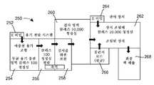 도 4는 제조 시설(250)을 예시하며, 시설(250) 내에서 수행되는 제조 공정을 설명하기 위해 사용될 수 있다.  설비(250)가 영구적 또는 반 영구적 벽 또는 다른 배리어의 사용을 통해 그 분할이 유지될 수 있는 복수의 공간(252, 254, 256, 258, 260, 262, 264, 266, 268)으로 분할된다는 것을 유의하여야 한다.  이해할 수 있는 바와 같이, 특정 공간 또는 영역은 배리어 또는 벽 없이 분할될 수 있지만, 대신 단순히 조직적 레벨에서 분리될 수 있다.  추가적으로, 더 많거나 더 적은 수의 공간 또는 대안적 공간 배열이 사용될 수 있다는 것을 알 수 있을 것이며, 공간의 이런 다른 수 또는 배열은 본 기술 분야의 통상적 숙련자에 의해 쉽게 결정될 수 있다.4 illustrates a